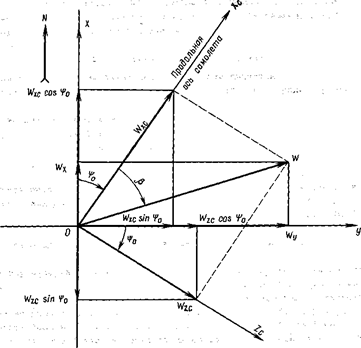 Рис. 7 Составляющие путевой скорости в ортодромической системе