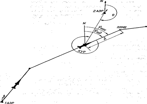 Рис. 9 Схема определения заданного курса и дальности до цели