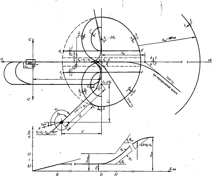 Рис.12 Траектория полёта в режиме возврата при дальности до радиомаяка менее 250 км