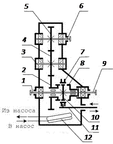 роликоподшипник; 16 – стержень включения насоса; 17 – ось шестерни;