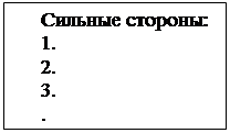 Слева выделяются два раздела (сильные стороны, слабые стороны), в которые соответственно вносятся все выявленные на первом этапе анализа сильные и слабые стороны организации. В верхней части матрицы также выделяется два раздела (возможности и угрозы), в которые вносятся все выявленные возможности и угрозы.