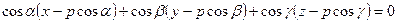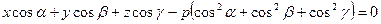 (1) теңдеуі жазықтықтың нормаланған теңдеуі деп аталады. Бұл теңдеуде х,у және z айнымалыларының коэффициенттері жазықтықтың бірлік нормальдық векторының координаталары болады, ал бос мүше /-р/ «минусң таңбасымен алынған координаталар бас нүктесінен жазықтыққа дейінгі қашықтыққа тең.