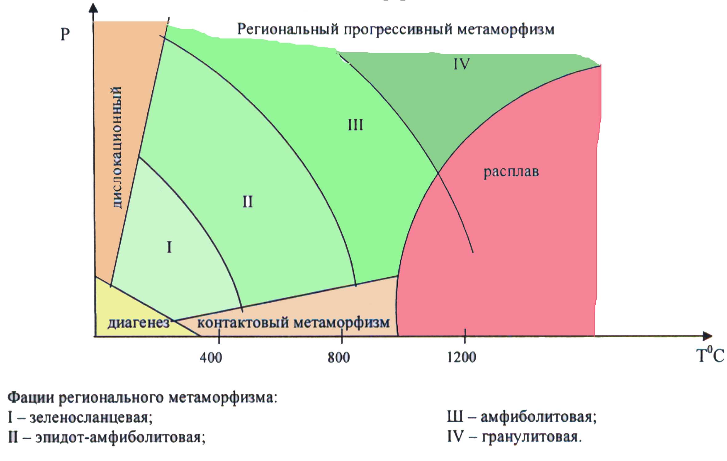 Рис. 14 Типы метаморфизма. Фации регионального метаморфизма