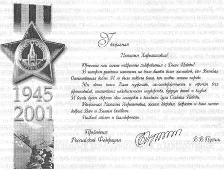 Рис. 35.Вариант письма ветерану войны от «президента страны», выполненный по технологиям