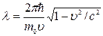 ). Именно эта длина волны должна фигурировать в формулах при волновом описании эффекта Рамзауэра – Таунсенда и опытов Дэвиссона - Джермера. Формула (3.7) после учета выражения для импульса принимает разный вид для частиц, движущихся медленно и со скоростью, близкой к скорости света в вакууме: