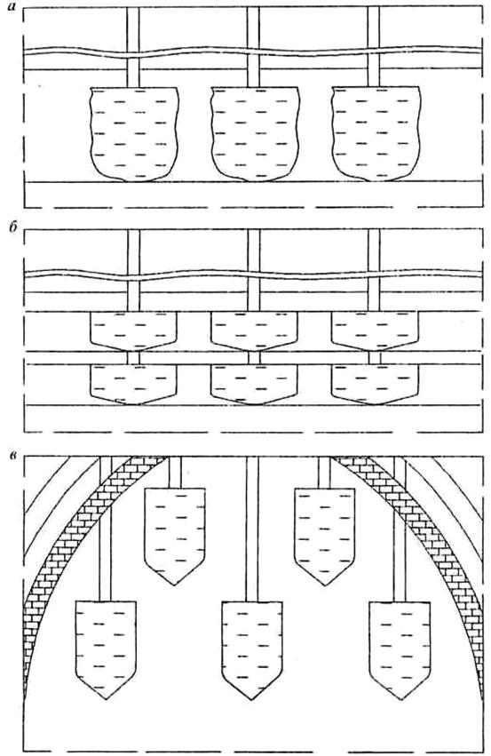 Рис. 1.3. Варианты размещения камер при подземном растворении солей:
