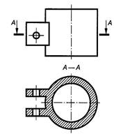 Положение секущей плоскости указывают на чертеже линией сечения, представляющей собой разомкнутую линию толщиной от S до 1,5S (см. таб. 1.2) c указанием направления взгляда стрелками (рис. 3.2 и 3.5). Толщина штрихов должна получаться в 1,5 раза больше толщины линий контура детали и штрихи не должны пересекать контур изображения. Стрелки наносят на расстоянии 2…3 мм от внешнего края штриха. Линию сечения помечают одинаковыми буквами русского алфавита (например, А), которые наносят около стрелок с внешней стороны всегда параллельно основной надписи. Номер шрифта букв должен быть в 2 раза больше номера шрифта цифр размерных чисел. Над разрезом делают надпись типа А – А, которую всегда располагают горизонтально.