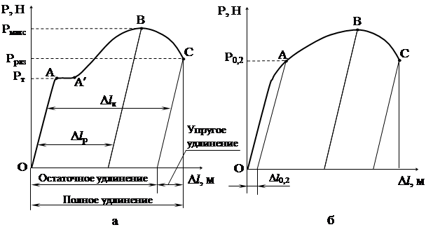 Рис. 13. Диаграмма растяжения пластичных металлов: