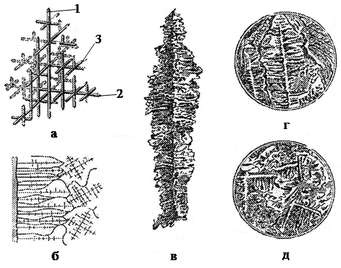 Рис. 2. Дендритная кристаллизация: а – схема дендритного строения