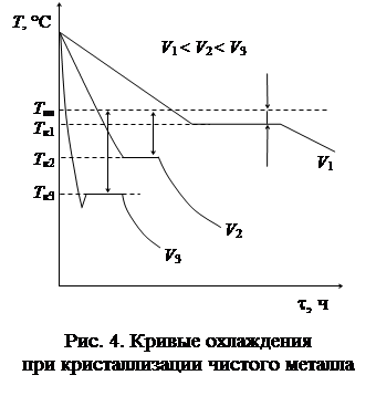 Степень переохлаждения металла зависит от скорости охлаждения V1, V2, V3 (см. рис. 4).