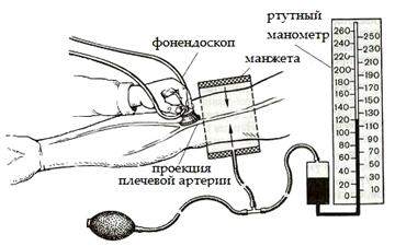 Рис. 1.Регистрация артериального давления неинвазивным методом (по Короткову).