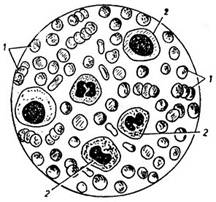 Изучите при большом увеличении микроскопа микропрепарат крови человека. Найдите эритроциты, обратите внимание на их окраску, форму, строение. Передвигая препарат, отыщите лейкоциты разных видов и рассмотрите их цвет, форму ядра и рассмотрите их цвет, форму ядра. Зарисуйте 1-2 эритроцита и некоторые лейкоциты.