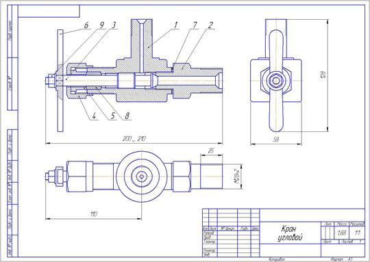 На рис. Представлен сборочный чертеж крана углового