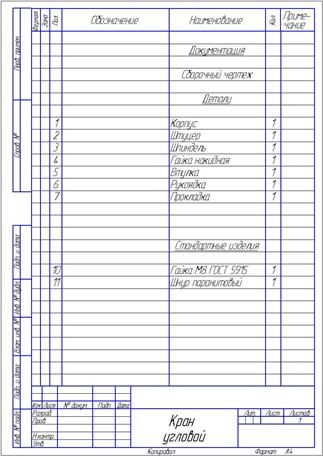 На рис. Представлена спецификация Крана углового