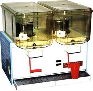 Работой холодильной машины охладителей напитков управляет реле температуры, капиллярная трубка которого контактирует со стенкой цилиндра испарителя. Питание испарителей хладагентом осуществляется через капиллярную трубку. Электродвигатель компрессора защищен от перегрузки и перегрева пускозащитным реле.