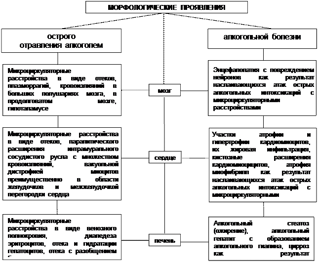 Схема 3. Морфологические проявления острого отравления алкоголем и алкогольной болезни