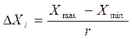 4. Найти максимальный и минимальный члены ряда, а полученный диапазон результатов наблюдений разделяют на одинаковые интервалы r равные