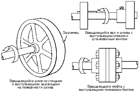 Рисунок 1.6 - Примеры опасных выступов на вращающихся частях