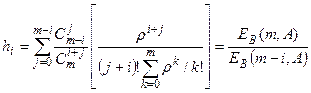 Поскольку отмеченные i серверов могут быть заняты совместно с любыми другими j серверами в соответствующем числу сочетаний из m по j комбинациях, где j любое число от 0 до m-i , то можно получить формулу для вероятности занятия фиксированных i серверов в системе с M входами:
