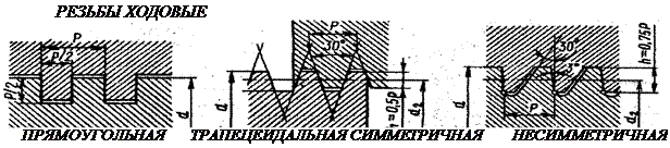 - різьблення ходовідля гвинтових механізмів (прямокутна, трапецеидальна симетрична, трапецеидальная несиметрична упорна) повинні мати мале тертя для зниження втрат.