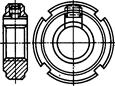 | При спокійних навантаженнях різьблення стопорять спеціальними гвинтами через мідну або свинцеву прокладку або деформуванням гайки із прорізами, перпендикулярними осі. | |||||