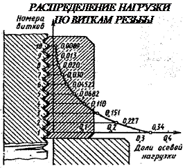Концентрація напруг у западинах витків різьблення враховується заниженням напруг різьблення, що допускають, на 40% у порівнянні з відповідними припуска напряжениями, що, матеріалу.