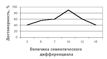 Рис. 2.2. Зависимость степени достоверности ответа от величины семантического дифференциала