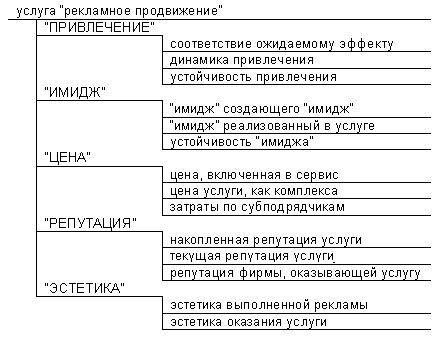 Оценка составляющих услуги (uij) может быть проанализирована напрямую: какие составляющие "удались" в процессе проектирования и позиционирования услуги. В нашем примере, очевидно, что наиболее удачно мы реализовали компоненты "привлечение" и "эстетика", а в отношении "цены" произошла некоторая неудача.