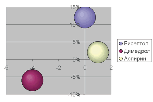 Заметим, что в нашем примере одна из услуг в нашем ассортименте в таком контексте рассмотрения и расчета имеет отрицательную прибыльность ("Услуга 2"). Конечно, необходимо отметить, что в более полном анализе мы должны рассматривать и динамику прибыльности отдельных товаров: не прибыльное сегодня изделие может стать прибыльным завтра. Именно это и отражено на диаграмме - учет динамики. По нашему графику видно, что хотя единица ассортимента "Услуга 1" на сегодняшний день имеет нулевую прибыль, но ее динамика положительна (+12% по отношению к продажам предыдущего месяца). "Услуга 3" имеет как положительную динамику продаж, так и положительную прибыль - стабильный и перспективный товар. А вот "Услуга 2" приносит не только отрицательную прибыль, но и имеет отрицательную динамику продаж. Соответственно теперь мы имеем и адекватный механизм принятия решения в отношении составляющих ассортимента.
