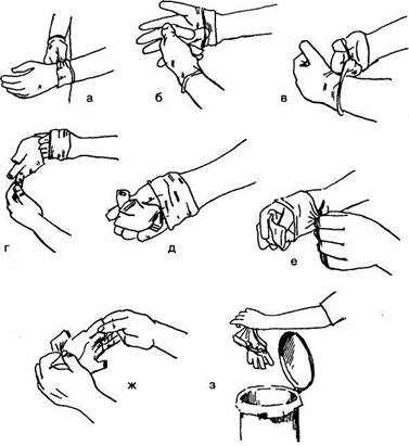 Использованные перчаткиснимайте так, как показано на рис. 1.6: