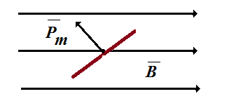 4. Рамка с током с магнитным моментом, направление которого указано на рисунке, находится в однородном магнитном поле. Момент сил, действующий на рамку, направлен