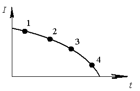 8. Ток в проводящем контуре изменяется со временем так, как изображено на графике. Укажите номер точки графика, которая соответствует минимальная ЭДС самоиндукции, возникающая в контуре. Считать, что L = const.