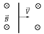 7.Горизонтальный проводник движется равноускоренно в вертикальном однородном магнитном поле. Модуль индукции магнитного поля равен В = 0,5 Тл. Скорость проводника направлена горизонтально, перпендикулярно проводнику (см. рисунок). При начальной скорости проводника, равной нулю, и ускорении а = 8 м/с2, проводник переместился на 1 м. ЭДС индукции на концах проводника в конце движения равна 2 В. Чему равна длина проводника?