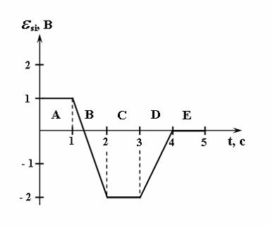 6. На рисунке представлена зависимость ЭДС индукции в контуре от времени. Магнитный поток сквозь площадку, ограниченную контуром, увеличивается со временем по закону Ф = at2 + bt + c, (a, b, c – постоянные ) в интервале …