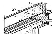 Карниз 7, 8 – горизонтальный выступ из плоскости стены, предназначенный для отвода вод, падающих на ограждающие конструкции здания. Верхний карниз называют венчающим (главным), он и придает зданию законченный вид. При небольших выступах карниза за поверхность стены (до 300 мм) его устраивают путем постепенного выпуска нескольких рядов кирпичей по 5—6 см в каждый ряд, (рисунок 9.3, б). В массовом строительстве чаще всего применяются сборные железобетонные карнизы (рисунок 9.3,а).