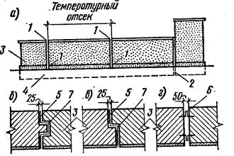 а – фасад здания б – температурный или осадочный шов с пазом и гребнем в – то же «в четверть» г – температурный шов с компенсаторами