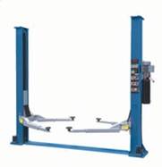 Двухстоечный подъёмник состоит из 2-х стоек, каждая из которых оснащена кронштейнами (лапами) для подъема. В зависимости от типа подъемника их грузоподъемность достигает 5 т. Подхват автомобиля в таких подъемниках осуществляется за поддомкратные площадки. Передние лапы подъемника имеют угол поворота 180 градусов, таким образом, обеспечивается быстрая установка автомобилей, как с длинной, так и с короткой базой. Подъемник двухстоечный с асимметричной конструкцией применяется для обслуживания широкобазных легковых автомобилей. Двухстоечные автомобильные подъемники подразделяются на симметричные и асимметричные. В асимметричных подъемниках стойки развернуты несколько к задней части автомобиля и соответственно телескопические лапы имеют разную длину (передние короче), что позволяет дверям автомобиля открываться значительно шире. Такие автомобильные подъемники можно рекомендовать для не слишком тяжелых авто (до 3 тонн). Для более тяжелых и крупных автомобилей рекомендуется использовать симметричные автоподъемники, что предпочтительнее из-за большей устойчивости автомобилей на лапах подъемников симметричного типа. Двухстоечные подъемники бывают и с напольной рамой, что предпочтительно использовать для непрочных полов. Такая конструкция облегчает и установку подъемника. Последнее время все большую популярность приобретают подъемники «с чистым полом». Они, обеспечивающим комфортный заезд автомобиля и работу автослесаря под поднятым транспортным средством. При расположении элементов синхронизации вверху, следует обратить внимание на такой важный элемент как высота верхней горизонтальной перемычки. Для обслуживания мини-венов с высокой крышей, ГАЗелей и.т.д., необходима минимальная высота от 4000мм. Подъемники применяются для общесервисных, шиномонтажных и арматурных работ.