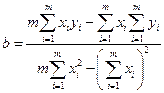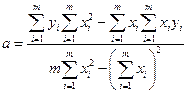 Уравнение прямой можно записать в виде у = а + bx. Если имеется m экспериментальных точек (x1y1, х2у2, ..., хmУm ), то, используя постулат МНК, можем найти параметры а и b прямой, наилучшим образом удовлетворяющей экспериментальным данным