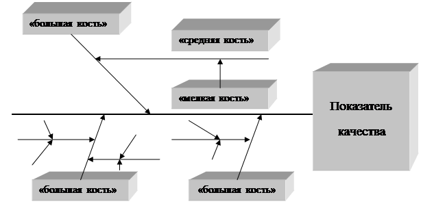 - выбор главных причин, влияющих на показатель качества. Их необходимо поместить в прямоугольники ("большие кости");