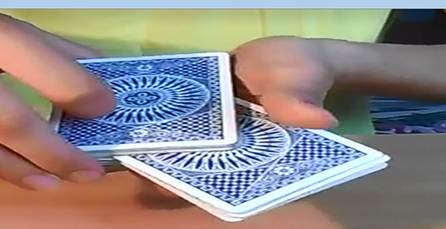 Затем обхватывает пальцами карты которые стояли на брейке и вы должны завести под те три карты которые выбрали рандонно и все это забрать(тока не забудьте брейк опять поставить над картами который выбраз зритель) теперь надо избавиться от трех лишних карта над брейком, вы просто проводите колодой над ними и забираете карты зрителя оставляя три заготовленые карты.
