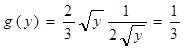 Решение.Случайная величина Y принимает ненулевые значения в промежутке (1,4), при этом плотность g(y)=f(y(y))y¢(y), где y — функция, обратная к заданной функции y=x2: y(y)=Öy. Поэтому