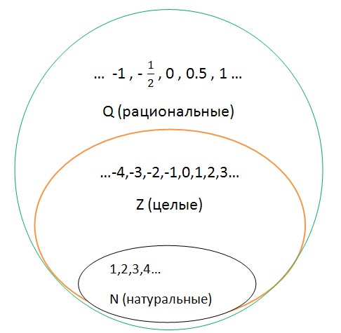Множество Q включает в себя множество целых чисел (Z) и натуральных чисел (N).