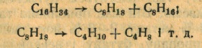 Термический крекинг проводят при нагревании исходного сырья (мазута и др.) до температуры 450 - 550°С при давлении 2-7МПа. При этом молекулы углеводородов с большим числом атомов углерода расщепляются на