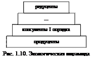 экосистем можно изобразить графически в виде экологических пирамид. Основанием пирамиды служит первый трофический уровень – уровень продуцентов, а последующие уровни образуют следующие этажи пирамиды. При этом высота всех блоков-этажей одинакова, а длина пропорциональна определенному показателю на соответствующем уровне.