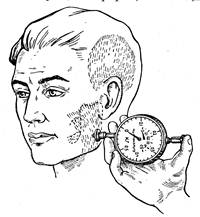 Метод миотонометрии учитывает тонус жевательных мышц при различных состояниях. О степени напряжения (плотности) мышц судят по силе, с которой погружают щуп прибора (миотонометра) на заданную глубину (рис. 1). Стрелки циферблата миотонометра показывают тонус мышц в граммах. В норме тонус состояния покоя собственно жевательной мышцы приблизительно равен 40 г., а при сжатии зубных рядов в состоянии центральной окклюзии колеблется в пределах 180 – 240 г.