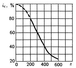 Разрешающая способность видикона характеризуется его апертурной характеристикой, которая определяется структурой, размерами и конечным значением поверхностной проводимости фотомишени, а также сечением коммутирующего (считывающего) луча. При создании трубки основная задача состояла в получении наименьшего диаметра сечения луча с требуемой плотностью тока. Так, при размере рабочего участка мишени 9,5x12,5 мм диаметр сечения луча не должен превышать 15 мкм при токе луча 0,5 мкА. Сложность технической реализации этих требований заставила разработчиков на определенном этапе развития техники ТВ передающих приборов для увеличения разрешающей способности видикона увеличивать диаметр его мишени до 40 мм. Дальнейшее совершенствование электронно-оптической системы видикона, установление жестких допусков на изготовление и сборку отдельных деталей и всего электронно-оптического узла в целом решило задачу повышения удельного разрешения трубки. Так, апертурная характеристика одного из видиконов, рекомендованных разработчиками для ТВ вещания (см. рис. 8.4), показывает, что на отметке 600 строк видикон обеспечивает глубину модуляции сигнала изображения 20 %.