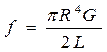 где f в свою очередь связан с модулем сдвига G, а также с геометрическими данными проволоки: радиусом R и длиной L