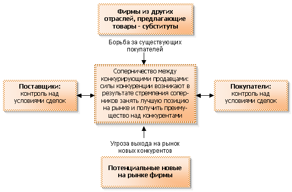 Выделяют пять сил конкуренции, которые определяют условия конкурентной борьбы и уровень прибыли в отрасли: