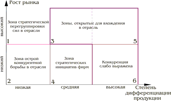 На основании данной матрицы можно не только оценивать силу конкуренции в отрасли, но и прогнозировать возможные направления изменения конкурентных стратегий соперничающих в отрасли фирм.
