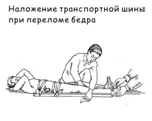 При переломе бедра неподвижность всей конечности осуществляется длинной шиной - от стопы до подмышечной впадины.